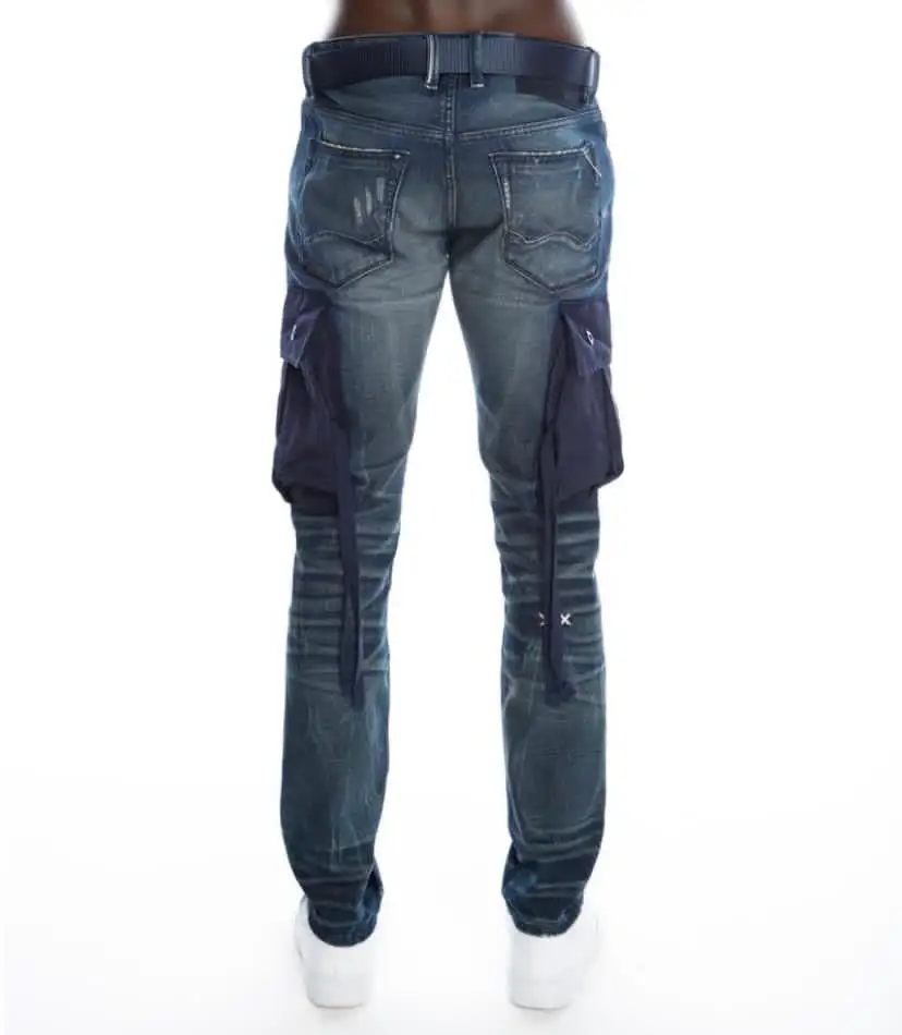 Slim style with a relaxed waist and a low rise. This rocker slim cargo is crafted from a premium denim canvas and printed details above the cargo pockets for a great combination. The leg narrows from the knee to the ankle. Utility belt included.