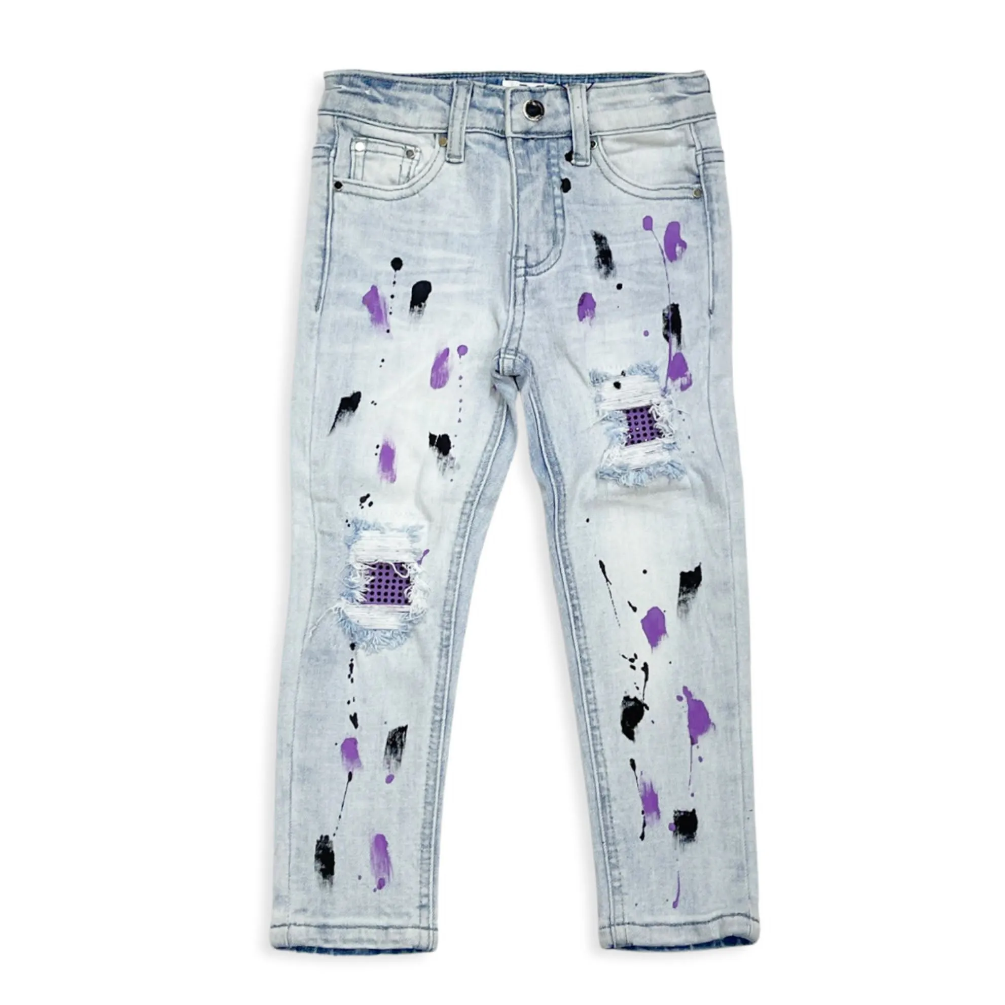 Dna premium (kids blue cut purple/black crystal drip jean)