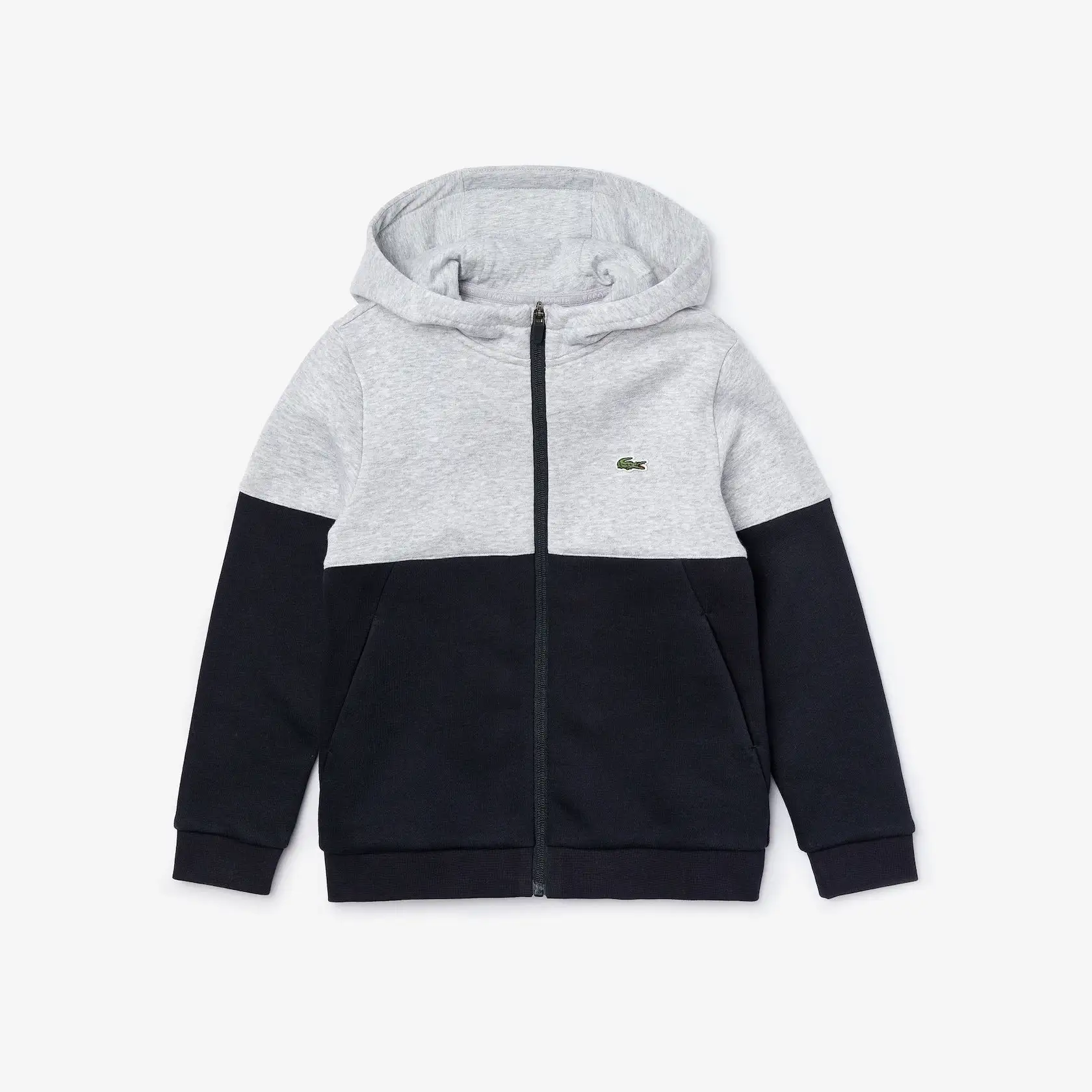 A very soft cotton blend fleece and a trendy colourblock design bring a distinctive attitude to this Lacoste Sport zip sweatshirt. With bold, contrasting lettering on the hood, it is completed by practical front pockets and comfortable ribbed finishes. Warm and stylish for your favorite budding athlete.