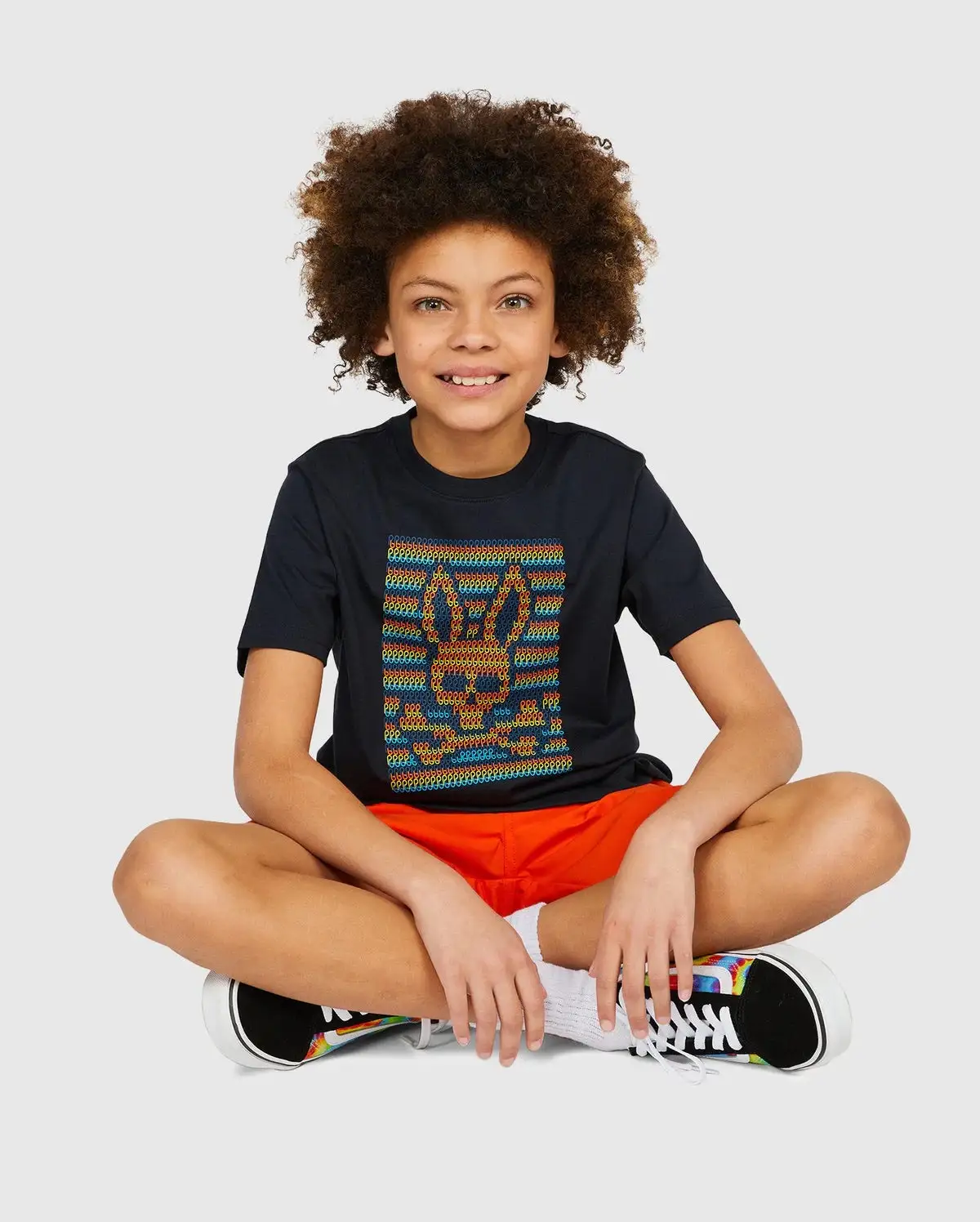 The kids Santiago tee will have your little one standing apart on the playground. This tee is crafted from only the softest Pima cotton and cut a bit longer than the average T-shirt. Taped seams in the shoulders ensure it never loses that perfect fit, even after a day of running around the park. The Santiago is finished with a bold chest graphic created using Psycho Bunny’s initials, which offers character to match your little one’s.